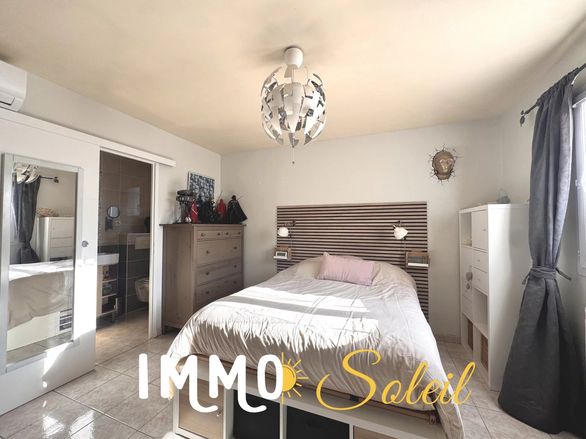 L’étage, offre une belle suite parentale de 20m² avec une chambre, un beau dressing et une salle d’eau avec WC.